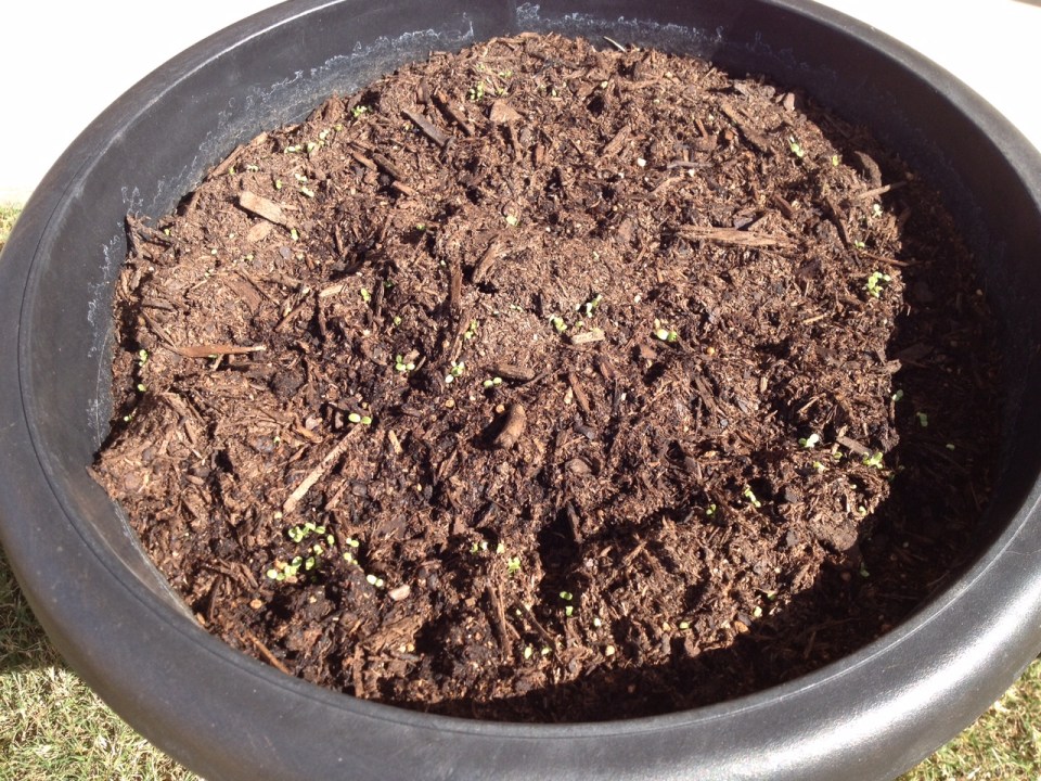 02_113014d ← Previous Next → Just a week after planting, the lettuce peeked through the dirt on Nov. 30.