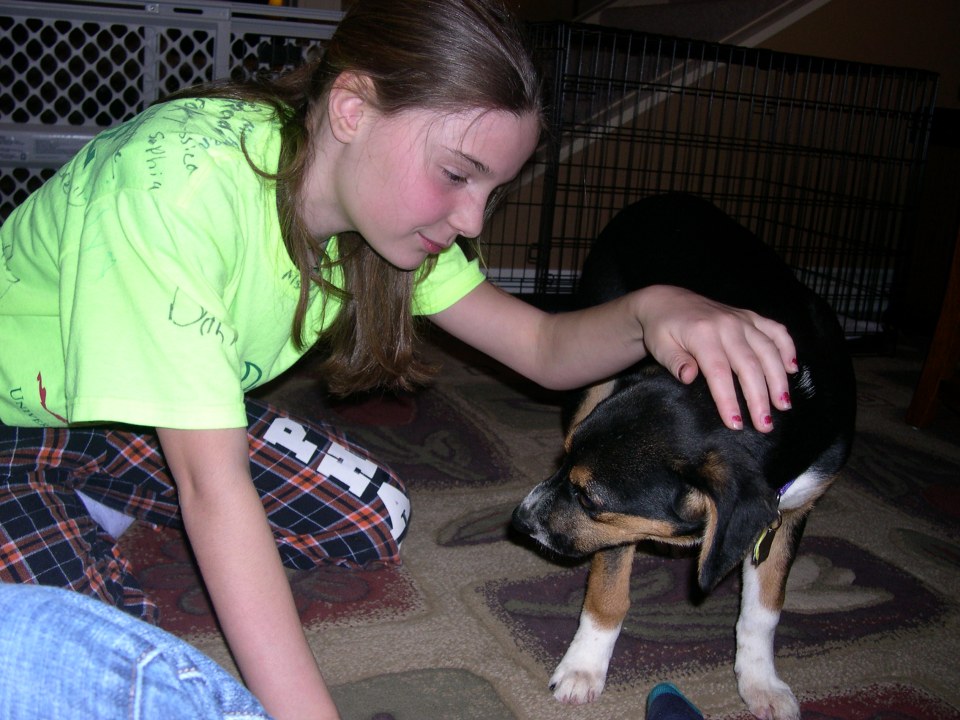 Saying hello to Chloe on Jan. 6, 2010.