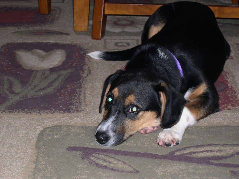 01062010DSCN0222 ← Previous Next → Not quite sure of her new family and new surroundings, Chloe spent the first hour beneath our dining room table. (Jan. 6, 2010)