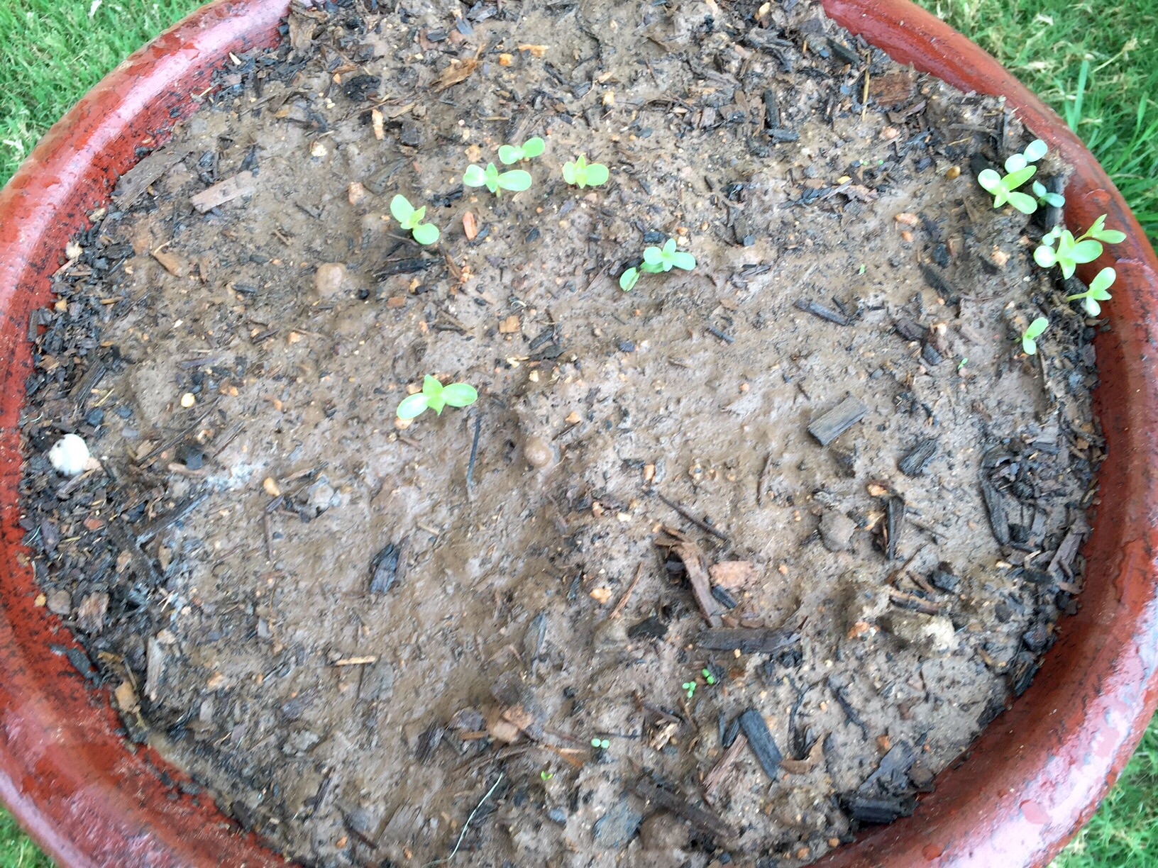 It’s official. At least one of everything I planted has come up. The late bloomers were the sweet red peppers in the raised garden bed and the aubrieta flowers in one of the pots near the house.