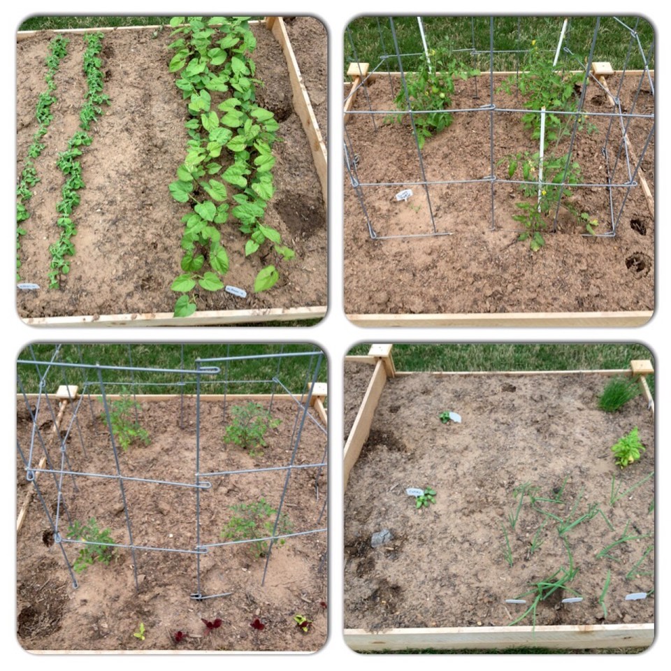 The four sections of the raised garden bed on April 9.