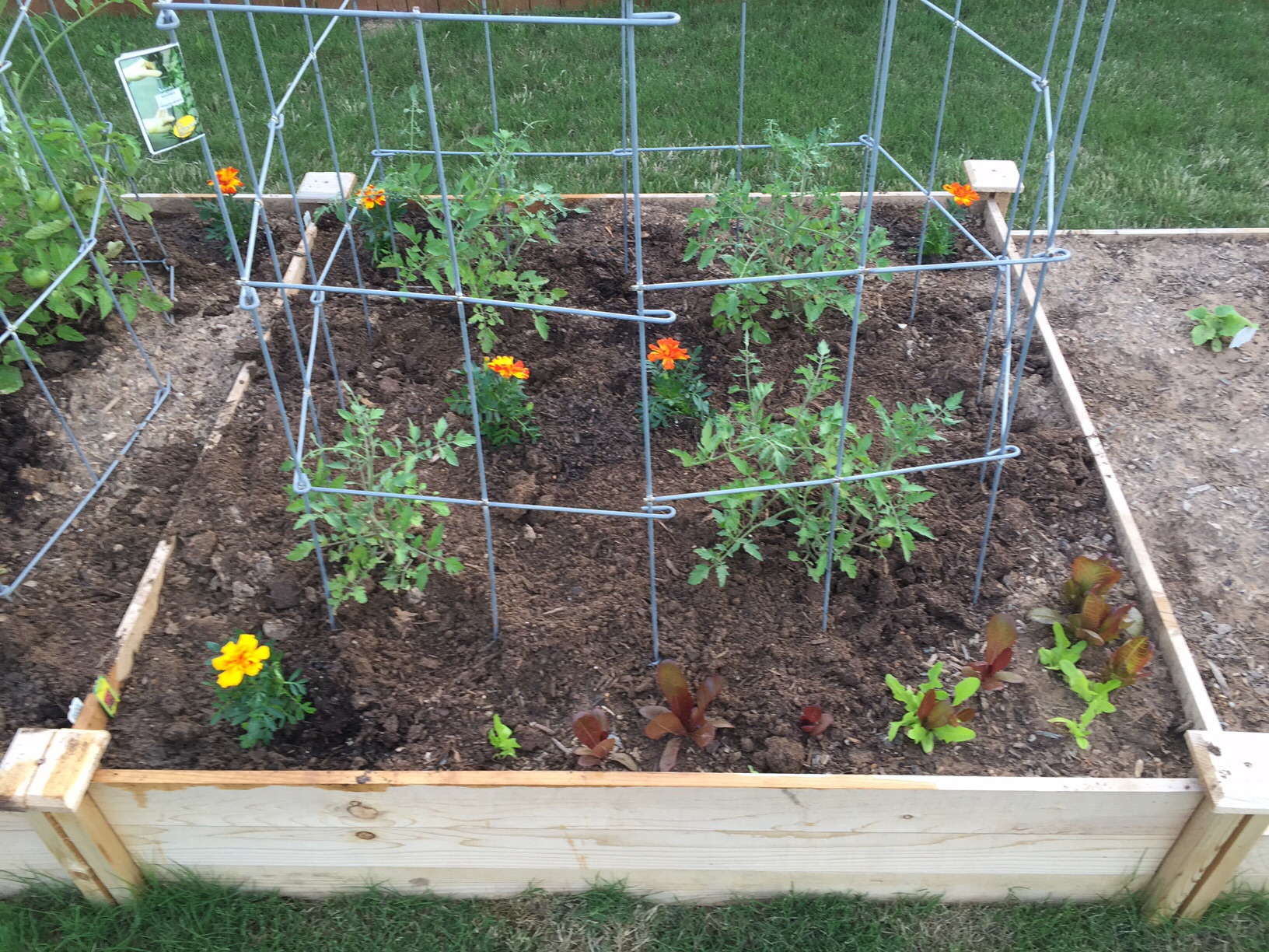 So during a pit stop at Home Depot I bought a flat and popped them in the soil between the different veggies. It took barely 15 minutes to plant them and give them a little drink of water. Well worth the admiring time I have to look forward to.