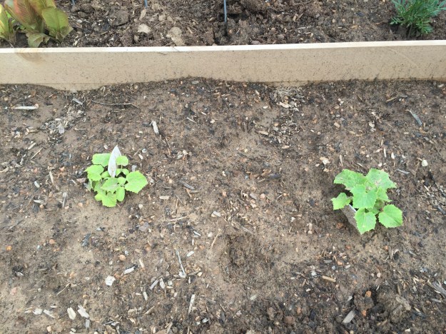 The cucumbers — especially the ones on the right — also seem to like the warm, humid conditions.