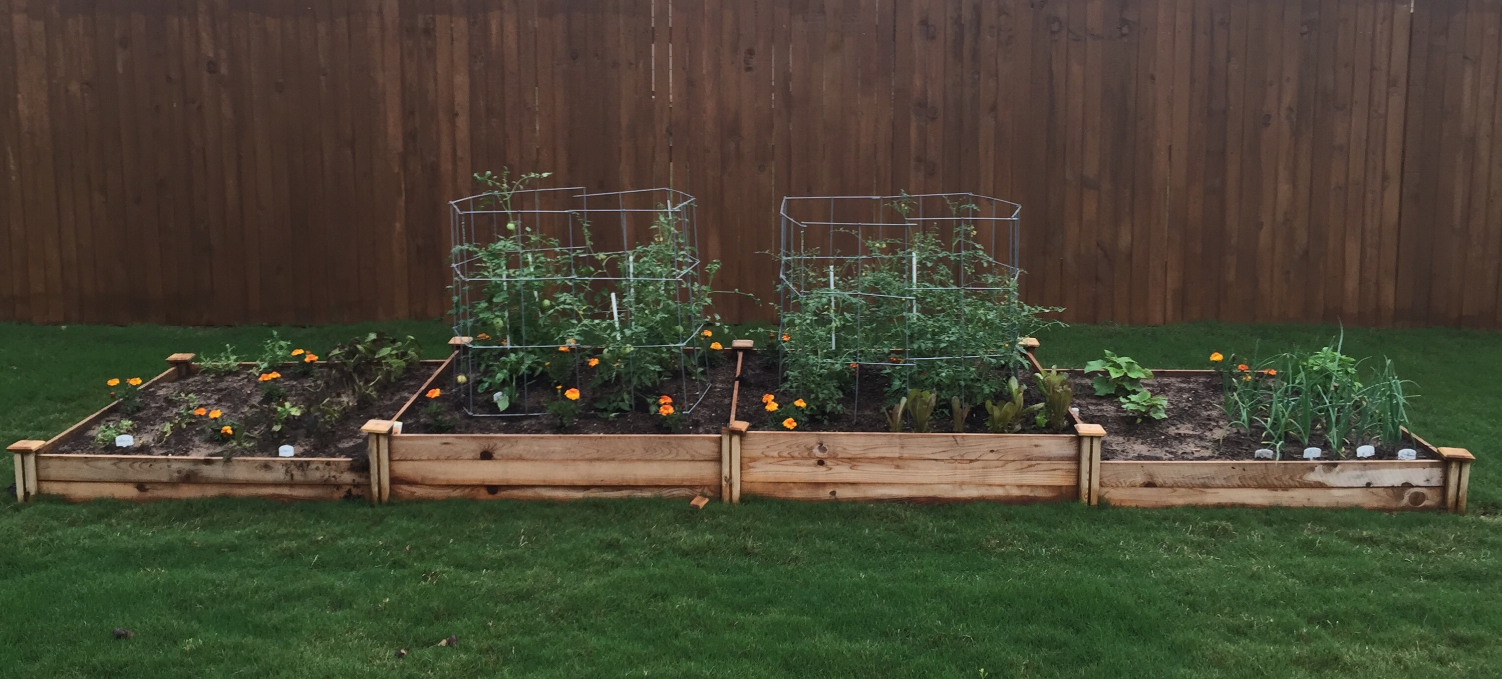I always like to track the progress of things — my garden, DIY projects, etc. And today I wondered how differently my vegetable garden looks from when I planted it in late March.