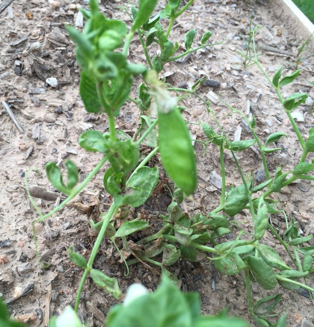On the bright side, I did notice one little pea pod forming on what’s left of the peas. And a few flowers. I may get a handful of pea pods out of them yet.