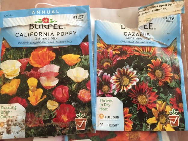 While the zinnias and cosmos in my three-tiered flower bed have been awesome this summer, I’m still waiting on the California poppies and gazanias in the top tier to flower.