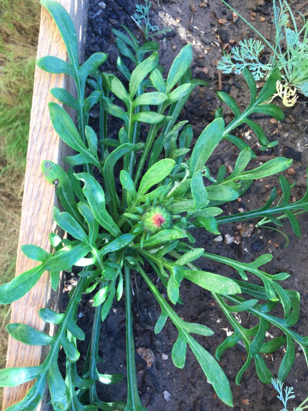 There’s also hope for the flowers in the top tier of my three-tiered bed. I think these are the gazanias that now have a few buds on them. Can’t wait to see what they look like when they open.