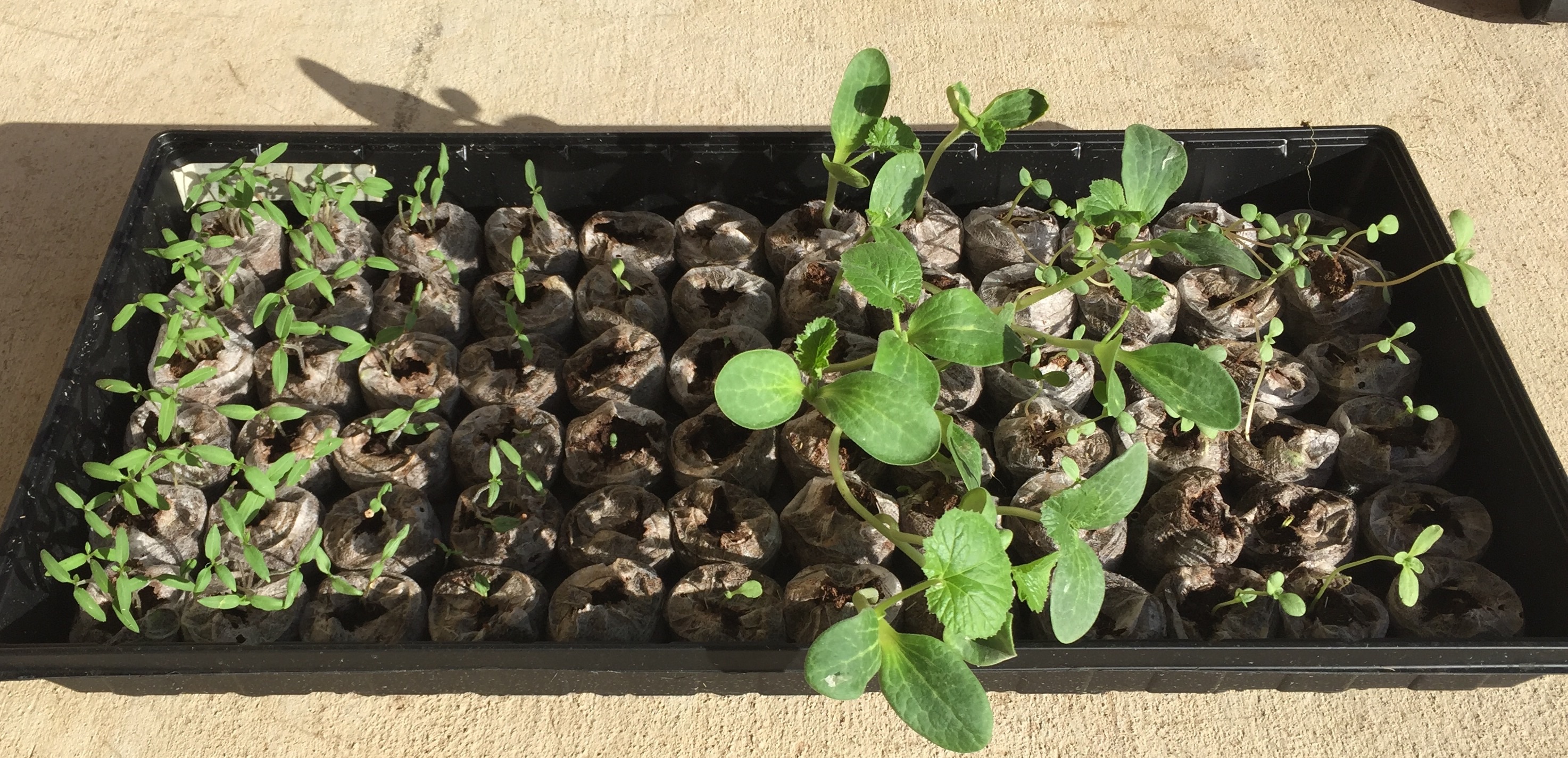 It really is amazing how fast new seedling grow. Just look at the difference between the pumpkins (center rows in both pictures) from this morning before work (below) to tonight, after work (above). They’re cute little buggers, aren’t they?