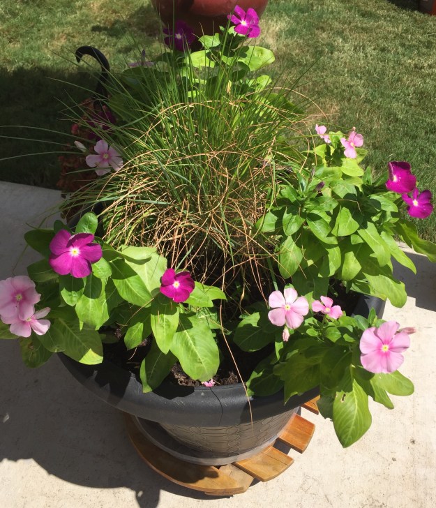 The vincas, which I transplanted into one of my patio containers a couple weeks ago to replace dried-up petunias, are so pretty, too. I’m going to keep them in mind for future plantings.