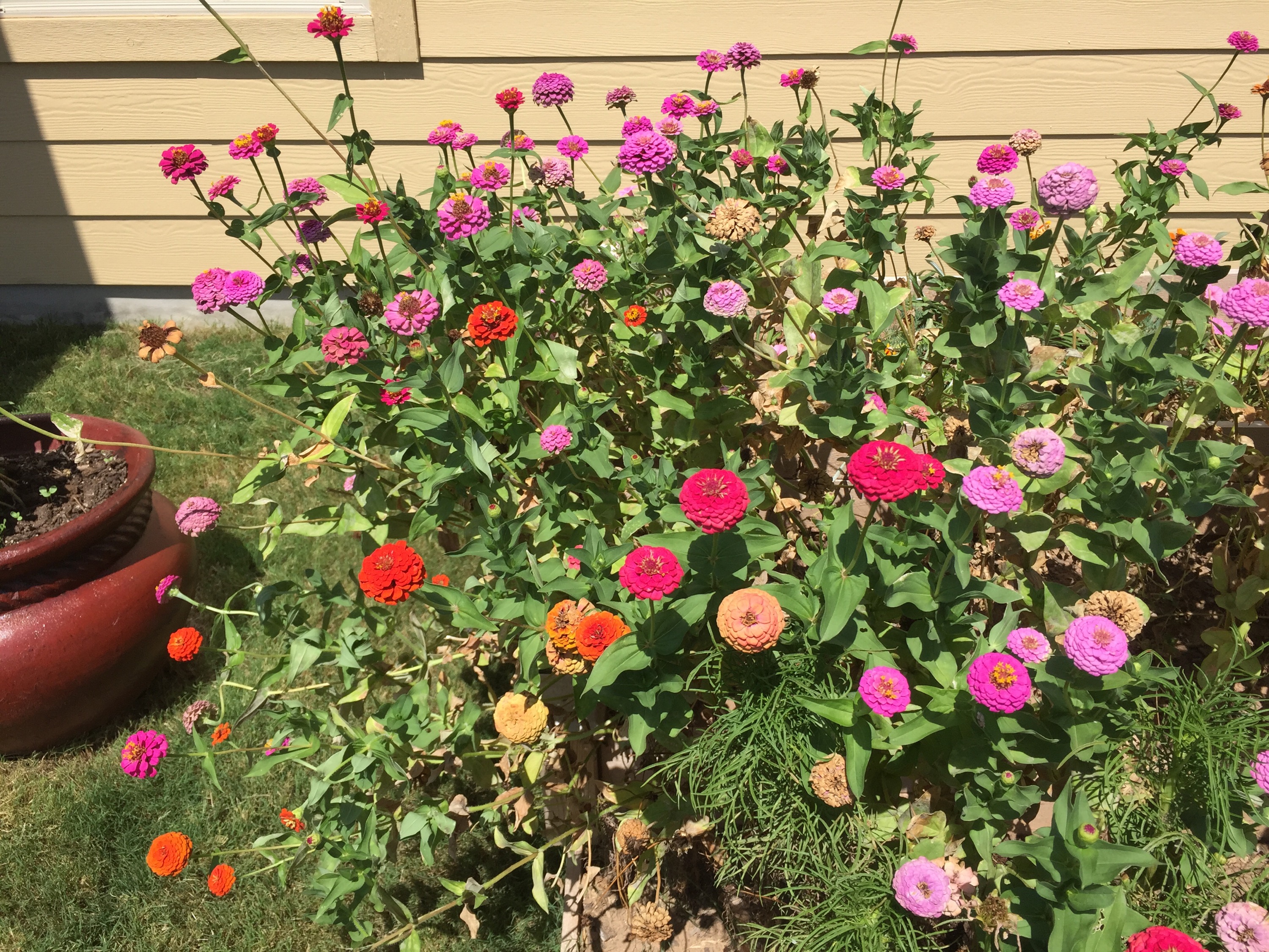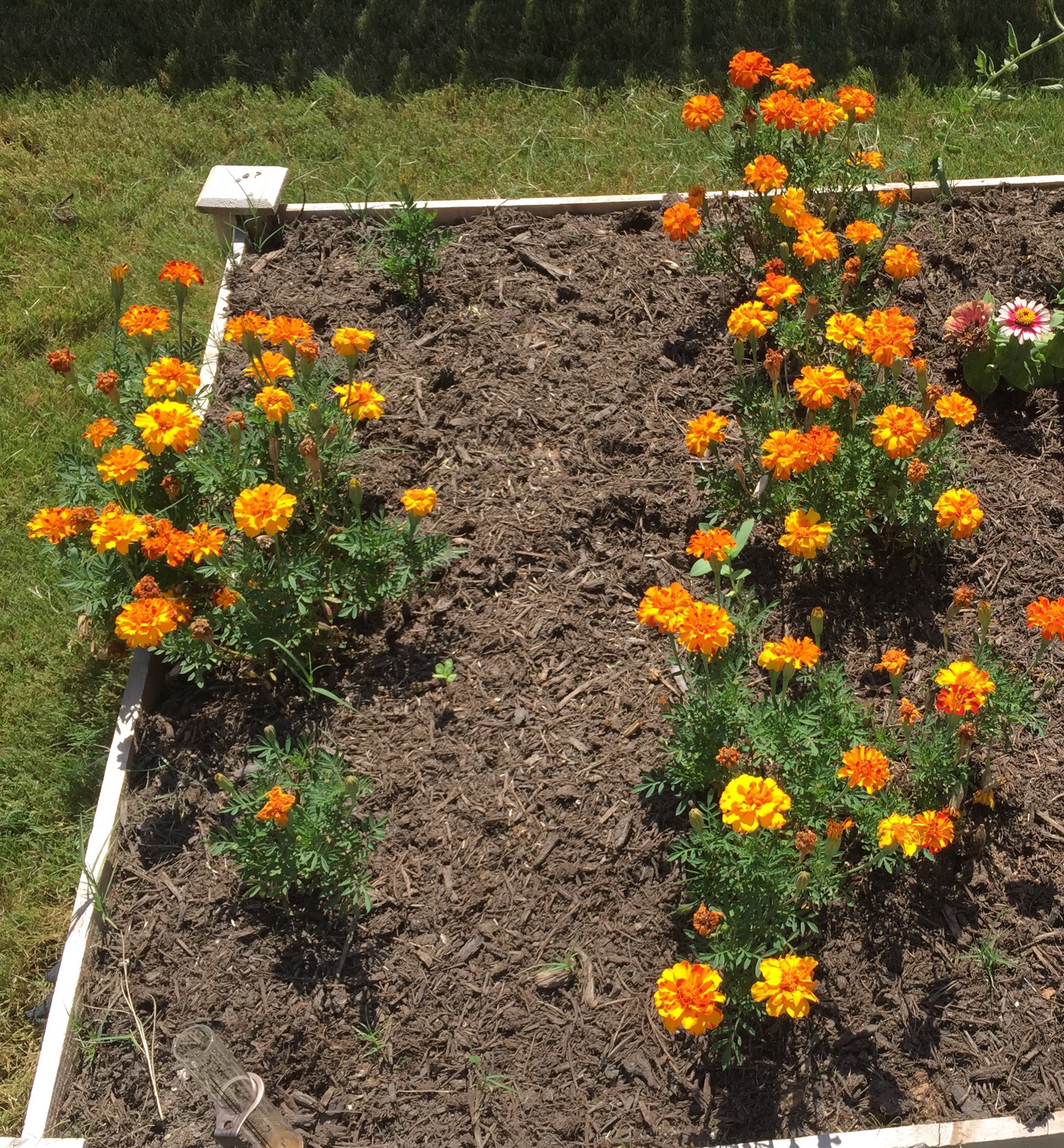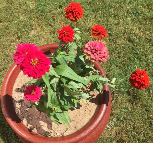 My flowers — everything from the zinnias and gazanias to the marigolds — are holding up pretty well despite the heat and the fact that they were planted back in March.