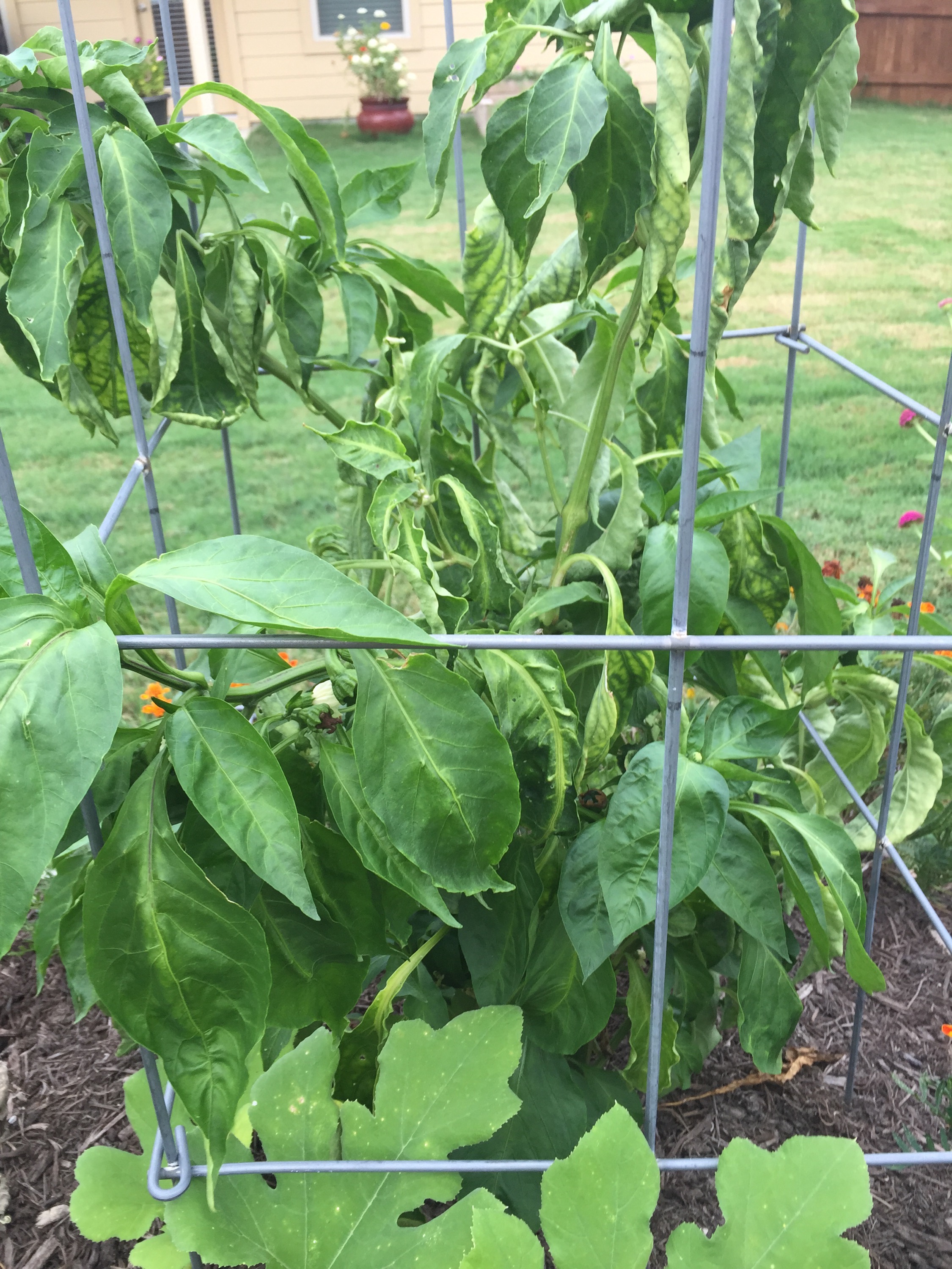 I thought by now the plant would be on its last legs, but it just keeps on going. I guess it must be putting all its energy into the fruit and not the leaves. Works for me, I like fresh peppers!