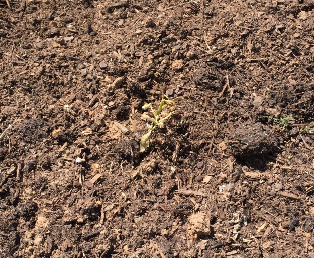 You can see the best-looking one in the photo below. No, it’s not like bright green weed at right. Pretty pathetic, right? It’s days like this that I’m really thankful for my flowers. The zinnias I planted from seed are just starting to flower (photo above). I think it’s cute how tiny the flowers are on them. Not sure if that’s because I planted so many in the raised bed or the seed had just been taken off dried flowers a month or so before being planted. I did plant some mini-zinnias earlier this summer, but I didn’t think I saved that much seed.