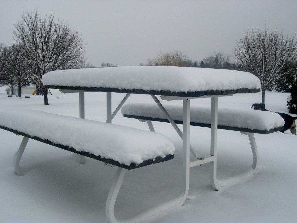 It’s easy to measure the snowfall that piled up on our picnic table.