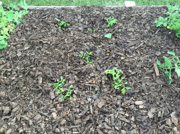 But I didn’t have the heart to just toss some of them either. So I took about a half-dozen of them and transplanted them in the bed where the cucumbers were before all but one froze.