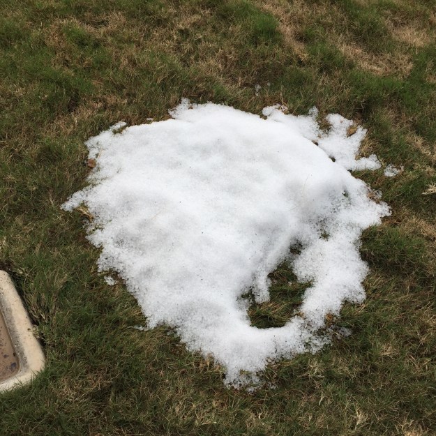 The first major hail storm since we moved to Texas is sticking around a bit. This pile (above) remained Monday evening, a full 24 hours after it fell. Continue reading