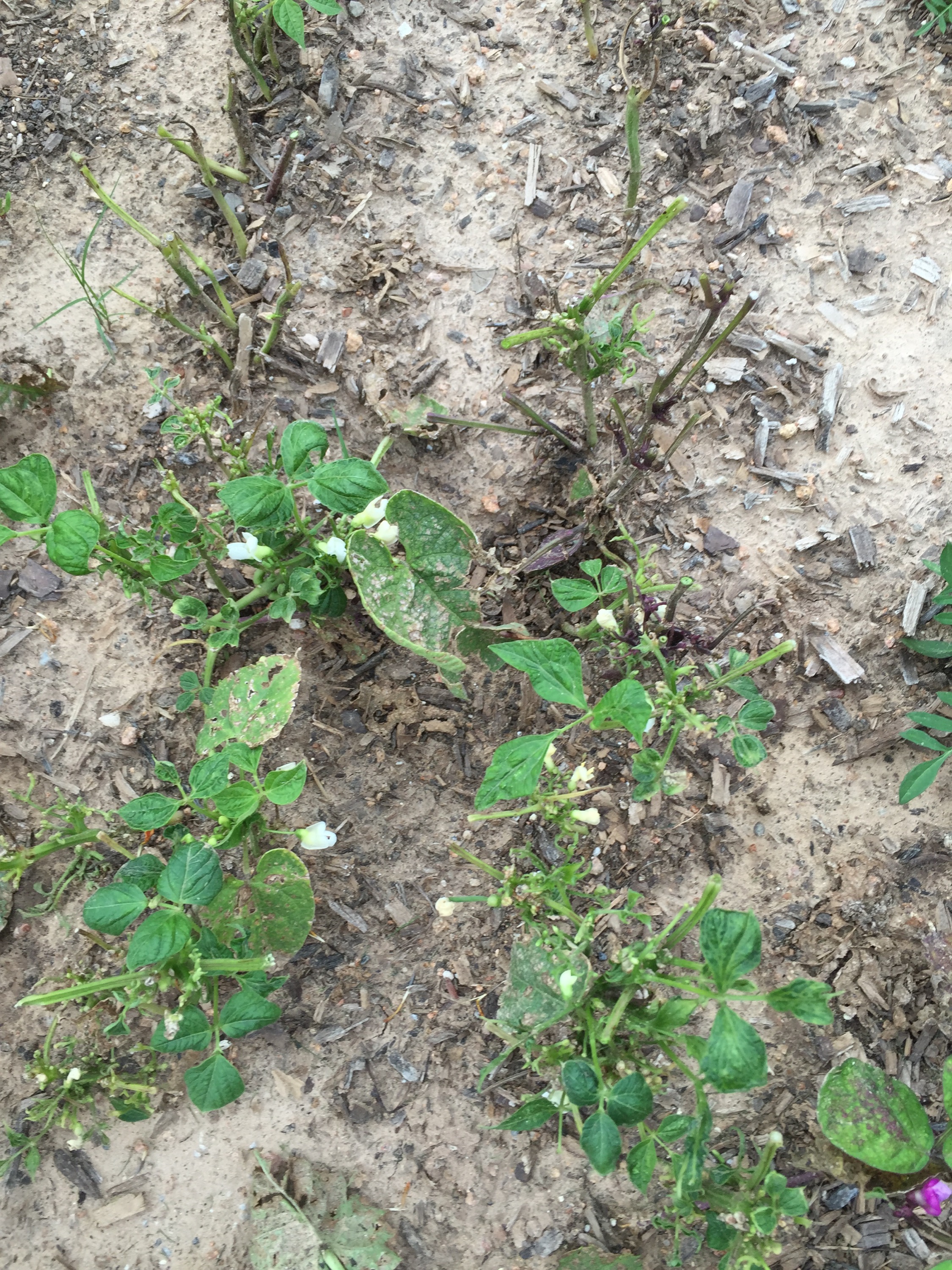 Good news on the bean front. At least I hope so. Showed the photos of spots and holes to an employee at a local nursery, and he thinks the spots are just a fungus from wet conditions. Continue reading