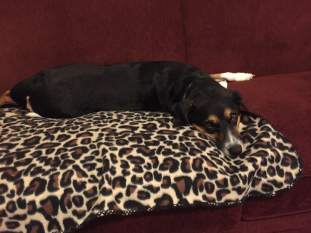 Finally, five weeks after back surgery, darn dog Chloe is back with a vengeance. Back sitting on the couch, back chasing birds and passersby outside. Back to her old shenanigans inside the house, too. Twice in the last week, we’ve come home to find something that was supposed to be on the counter on the floor, empty and/or in pieces. Continue reading