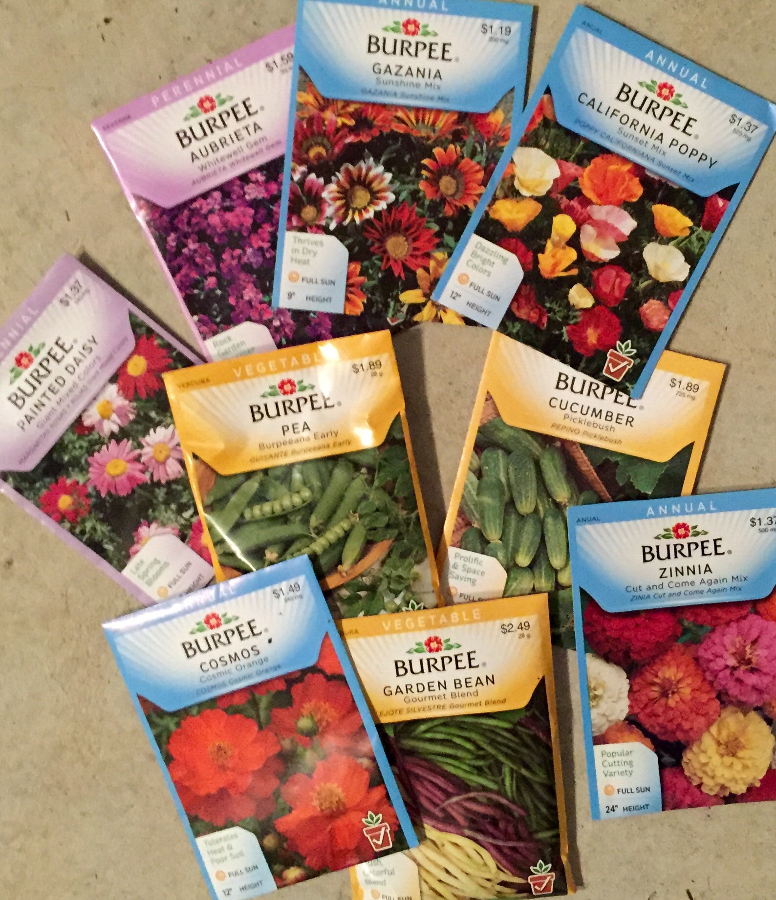 Speaking of which, my flower seed packets this year are my tried and true faves zinnias and cosmos, along with aubrieta, gazania, California poppies and daisies. I’m thinking I’m going to devote one fairly big raised bed to veggies and herbs and another big one – or maybe two smaller ones – to flowers. I have yet to figure out exactly where the underground sprinkler system’s pipes and heads are in the backyard in order to place the container beds, not to mention my crape myrtle tree. Tomorrow night, I think I’m going to run the sprinklers so I can get that settled once and for all. Not that we need any more rain, but that seems to be the easiest way to figure it out.